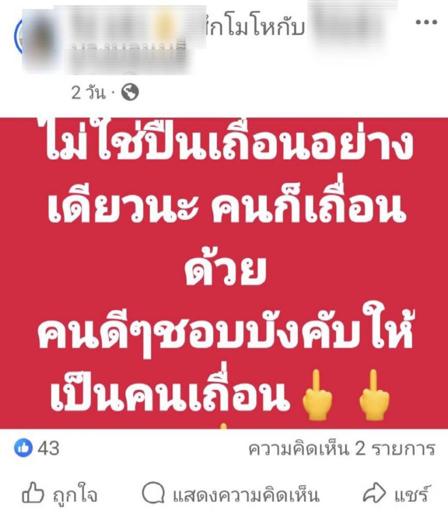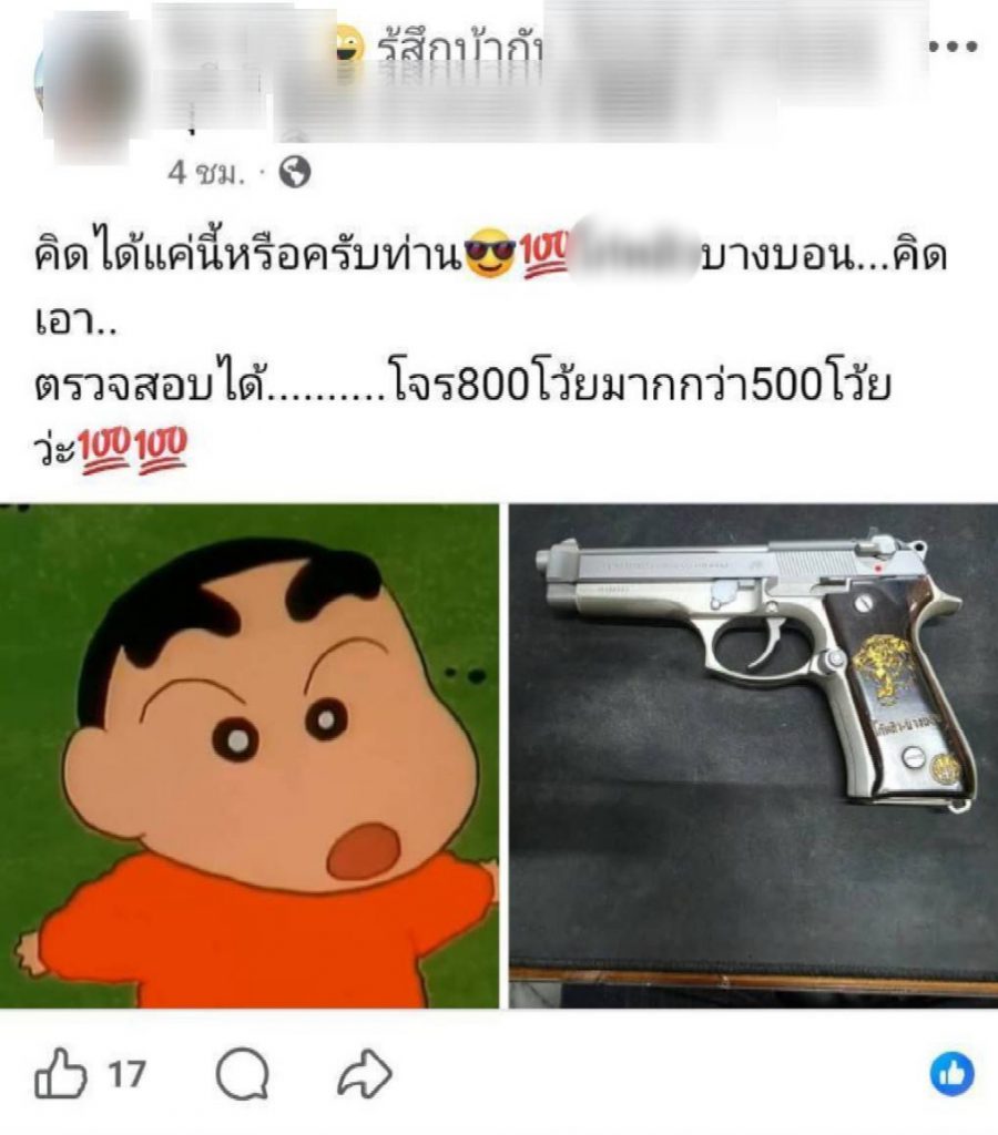 จากการตรวจสอบเฟซบุ๊กส่วนตัวของบุคคลดังกล่าว พบการเผยแพร่ภาพอาวุธปืนหลายครั้ง ควบคู่กับภาพบัตรเจ้าหน้าที่ และข้อความเชิงท้าทาย อาทิ “ไม่ใช่แค่ปืนเถื่อนอย่างเดียว คนก็เถื่อนด้วย” รวมถึงข้อความในลักษณะอวดอ้างอำนาจ ซึ่งชาวบ้านมองว่าไม่เหมาะสม และอาจเข้าข่ายข่มขู่หรือเย้ยหยันกฎหมาย
