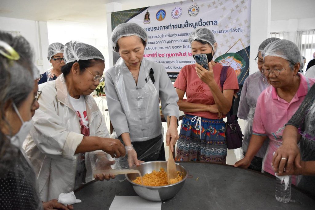 ที่จังหวัดนครปฐมผู้สื่อข่าวรายงานว่าเมื่อวันที่ 28 กุมภาพันธ์ 2569 เวลา 09.00 น. ที่ผ่านมา ที่เรือนอเนกประสงค์ สมาคมผู้สูงอายุในเขตเทศบาล นครนครปฐม จังหวัดนครปฐม โดยสำนักงานวัฒนธรรมจังหวัดนครปฐม จัดโครงการส่งเสริมสนับสนุนการอนุรักษ์ฟื้นฟูขนบธรรมเนียมประเพณีวัฒนธรรมท้องถิ่น และมรดกภูมิปัญญาทางวัฒนธรรม ประจำปีงบประมาณ พ.ศ. 2569 โดยมี นายประมวล ลาภเจริญวงศ์ ที่ปรึกษานายกเทศมนตรีนครนครปฐม นางสาวอรพร คัมภีรศาสตร์ ผู้อำนวยการกลุ่มส่งเสริมศาสนา ศิลปะ และวัฒนธรรม นางสาวฐาปนีย์ สุวรรณทัต วิทยากรภูมิปัญญาขนมขี้หนูเนื้อตาล ข้าราชการ เจ้าหน้าที่ สำนักงานวัฒนธรรมจังหวัดนครปฐม คณะวิทยากร และผู้เข้ารับการอบรม เข้าร่วมโครงการฯ
