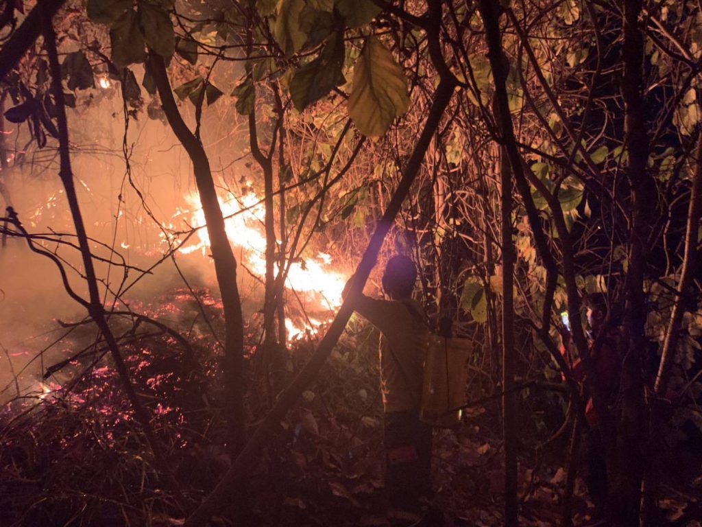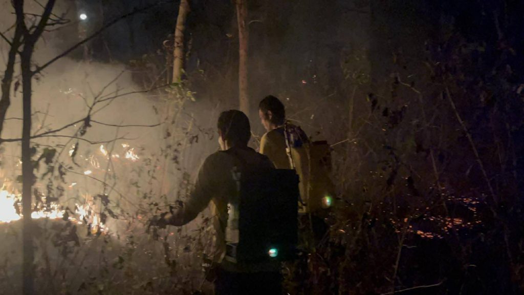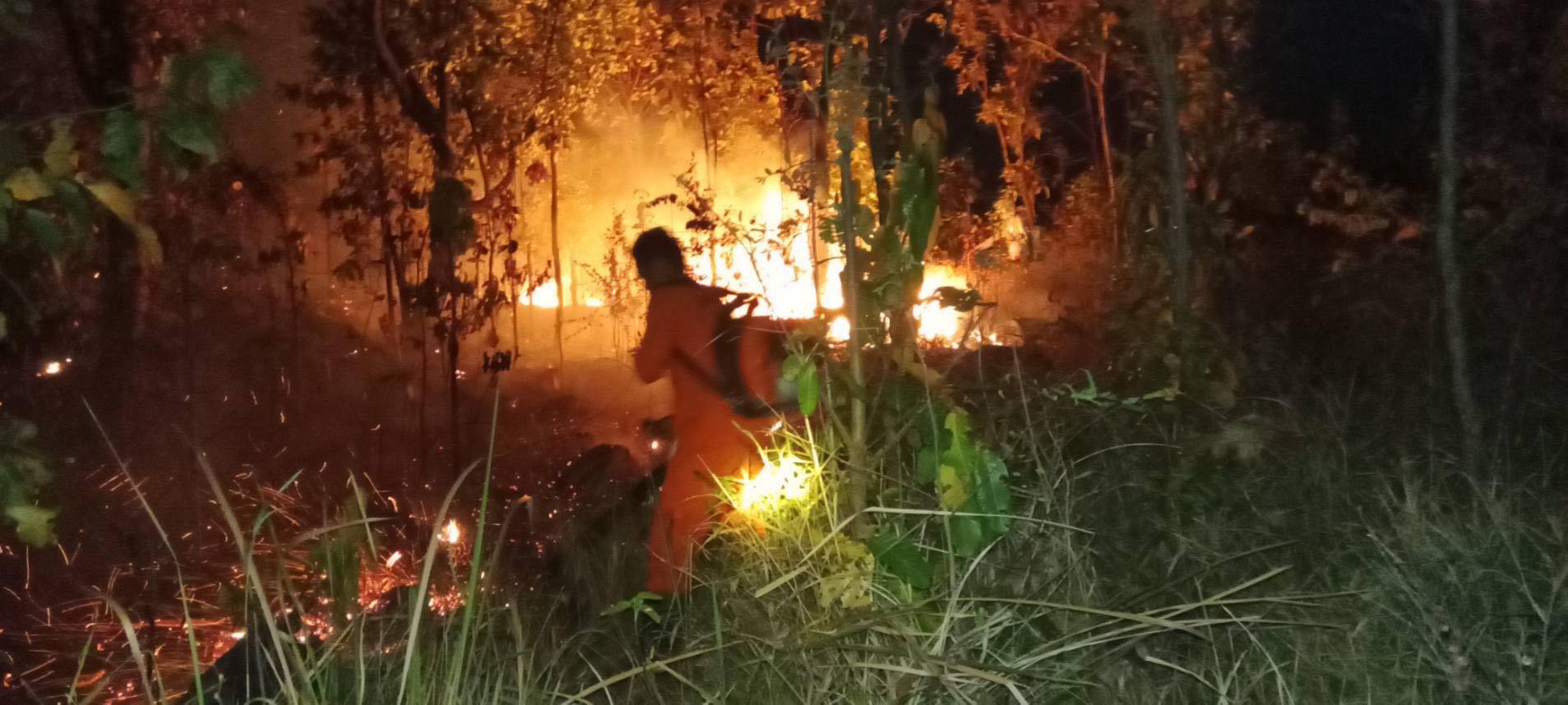 ระทึกกลางดึก! ไฟป่าลุกโชนใกล้วัดสะพานหิน ชัยภูมิ หวิดลามไหม้กุฏิพระ ชาวบ้านกว่า 50 คนระดมดับไฟนาน 2 ชั่วโมง