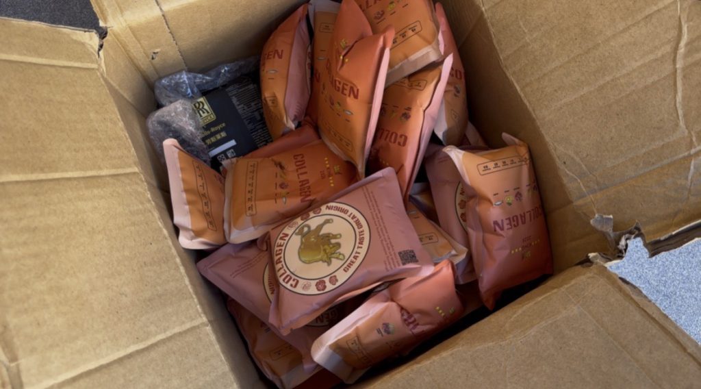 จากการตรวจค้นพบ ยาเสพติดให้โทษประเภท 1 (แฮปปี้วอเตอร์) ชนิดผง จำนวน 50 ซอง น้ำหนักรวมประมาณ 6.5 กิโลกรัม โดยมีการบรรจุในซองบรรจุภัณฑ์หลายรูปแบบ เช่น ซองกาแฟสำเร็จรูปและอาหารเสริม เพื่อหลีกเลี่ยงการตรวจจับของเจ้าหน้าที่