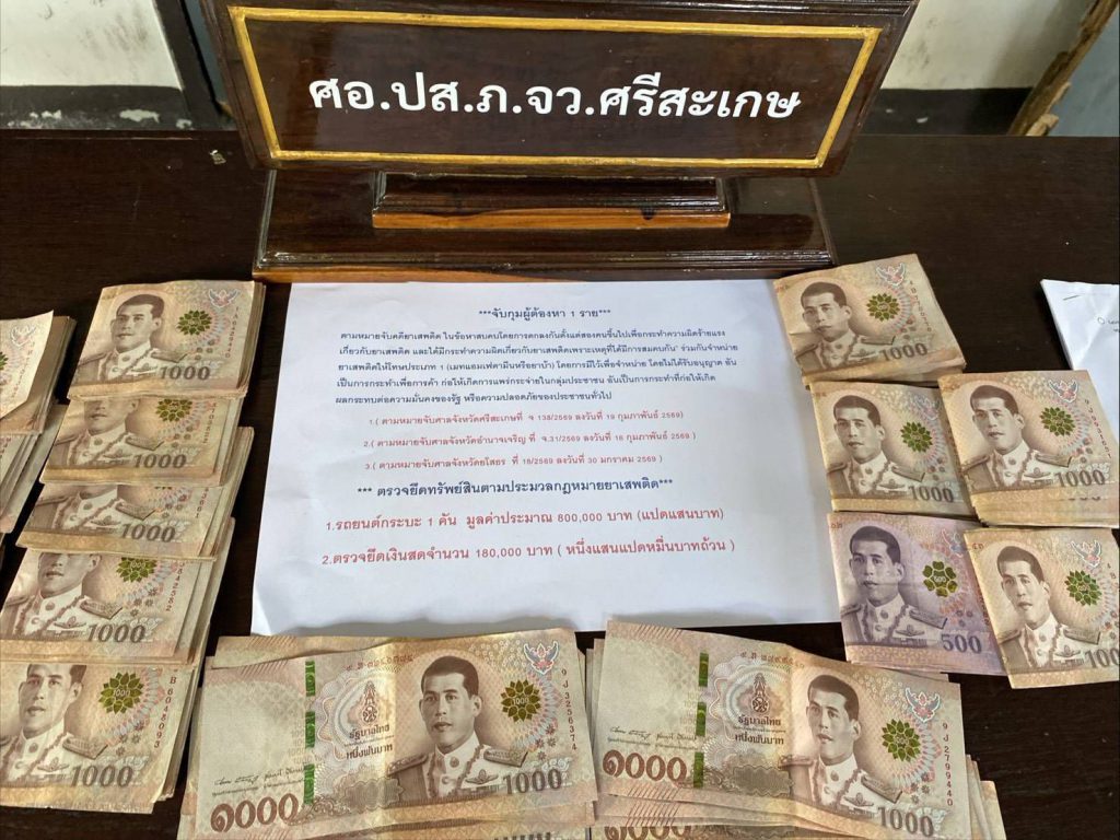 ศรีสะเกษล่าข้ามจังหวัด! ชป.238 พิทักษ์นครลำดวน บุกรวบเอเย่นต์ยาบ้ารายใหญ่กลางงานบุญบั้งไฟ ยึดทรัพย์เกือบล้าน