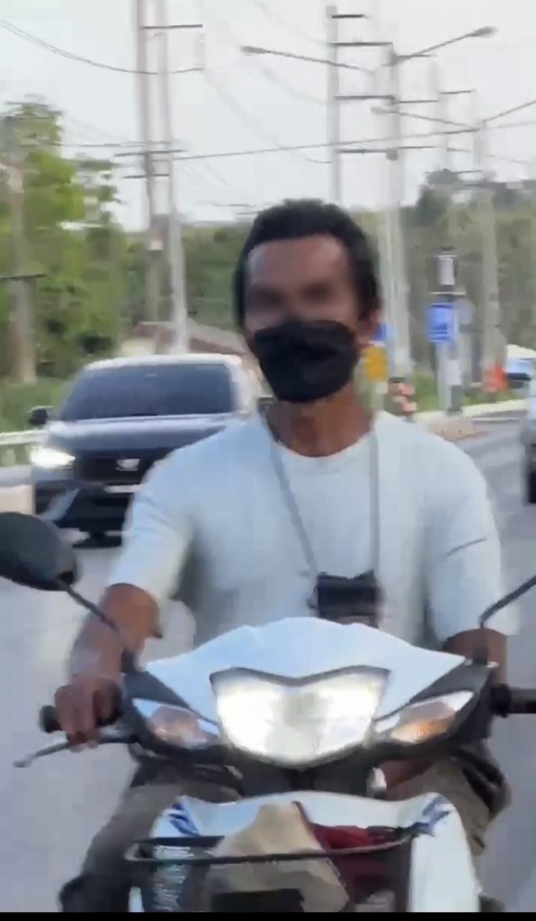 ได้มีชายคนหนึ่งสวมเสื้อยืดคอกลมสีขาว สวมแมสสีดำ กางเกงขายาวสีเทา ขี่รถจักรยานยนต์ไล่ประกบตาม พออยู่ในระยะใกล้ๆได้รูดซิปกางเกงแล้วเอาอวัยวะเพศออกมาสำเร็จความใคร่ให้เห็น ตนเองรู้สึกตกใจมากและพยายามเอาโทรศัพท์มาถ่ายคลิปไว้ ชายดังกล่าวเมื่อเห็นว่ามีการถ่ายคลิปก็ขับขี่รถจักรยานด้วยความเร็วหลบหนีไป