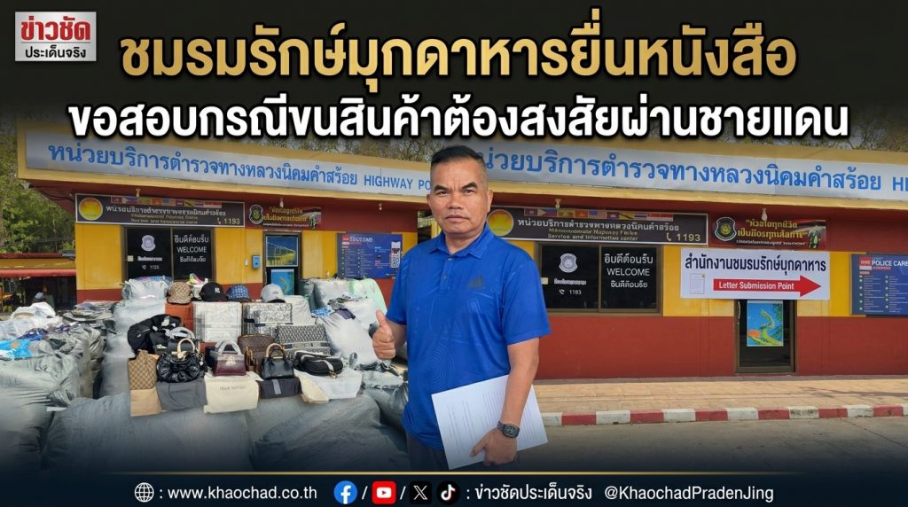 มุกดาหาร — ชมรมรักษ์มุกดาหารยื่นหนังสือต่อพนักงานสอบสวน สภ.นิคมคำสร้อย ขอให้ตรวจสอบข้อเท็จจริงและพิจารณาดำเนินการตามกฎหมาย กรณีการขนส่งสินค้าที่อาจเข้าข่ายละเมิดทรัพย์สินทางปัญญาและกฎหมายศุลกากร หลังเกิดเหตุสกัดจับรถบรรทุกในพื้นที่จังหวัดมุกดาหาร