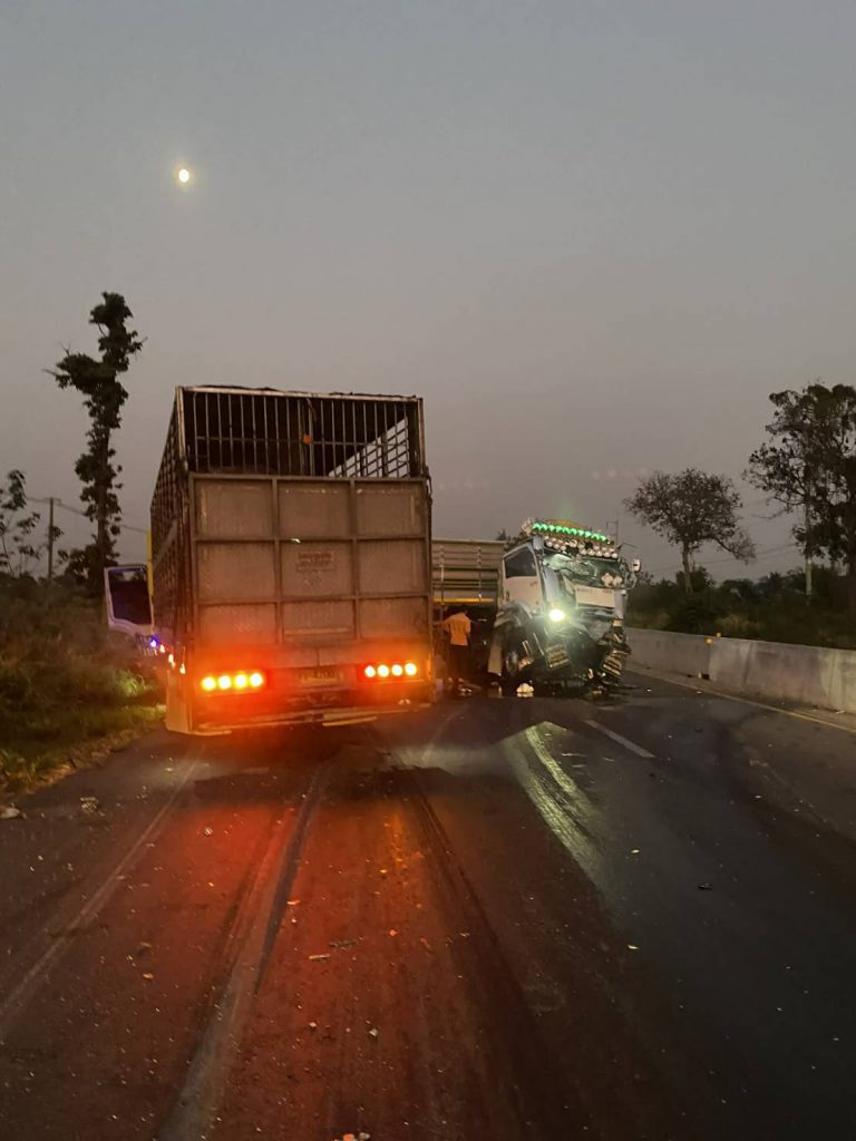 ชัยภูมิ///รถบรรทุกยักษ์ใหญ่ชนสนั่น 3 คันรวดบนถนนสายเทพสถิตบาดเจ็บ 2 ราย