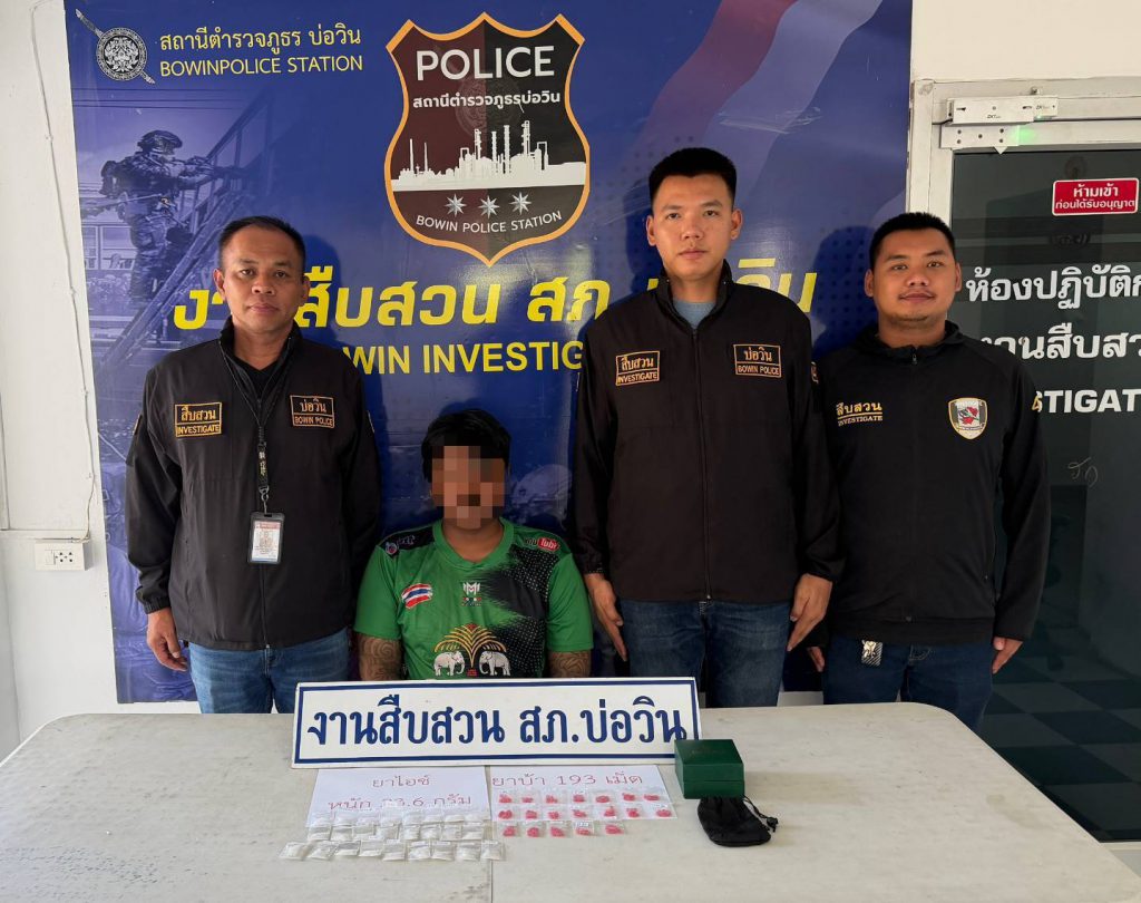ชลบุรี – วันที่ 10 เมษายน 2569 เจ้าหน้าที่ตำรวจชุดสืบสวน สภ.บ่อวิน เปิดปฏิบัติการกวาดล้างเครือข่ายยาเสพติดในพื้นที่ สามารถจับกุมผู้ต้องหาได้ 1 ราย พร้อมของกลางยาบ้าและยาไอซ์จำนวนหนึ่งการปฏิบัติการครั้งนี้อยู่ภายใต้การอำนวยการของ พ.ต.อ.กฤศ ธิติทัศนะ ผู้กำกับการ สภ.บ่อวิน และ พ.ต.ท.สมคิด ยานะพันธ์ รองผู้กำกับการสืบสวน สภ.บ่อวิน โดยมอบหมายให้ พ.ต.ท.วีระ วัฒนาณรงค์ชัย สารวัตรสืบสวน นำกำลังเจ้าหน้าที่ลงพื้นที่สืบสวนหาข่าว เพื่อติดตามพฤติกรรมกลุ่มผู้ค้ายาเสพติดในพื้นที่อย่างต่อเนื่องจากการสืบสวน เจ้าหน้าที่สามารถเข้าตรวจค้นบ้านพักภายในหมู่บ้านบีลีฟฮิลล์ 2 หมู่ 2 ตำบลบ่อวิน อำเภอศรีราชา จังหวัดชลบุรี และจับกุม นายวิศนุวัฒน์ อายุ 28 ปี พร้อมของกลางยาบ้า จำนวน 193 เม็ด, ยาไอซ์ น้ำหนัก 23.6 กรัม และเครื่องชั่งดิจิทัล 1 เครื่องเบื้องต้น เจ้าหน้าที่แจ้งข้อหา “จำหน่ายยาเสพติดให้โทษประเภท 1 (เมทแอมเฟตามีน) โดยมีไว้เพื่อจำหน่ายเพื่อการค้า” และ “เสพยาเสพติดให้โทษประเภท 1 โดยผิดกฎหมาย” โดยผู้ต้องหาได้รับทราบข้อกล่าวหาแล้วจากนั้นเจ้าหน้าที่ควบคุมตัวพร้อมของกลาง ส่งพนักงานสอบสวน สภ.บ่อวิน เพื่อดำเนินคดีตามกฎหมายต่อไป