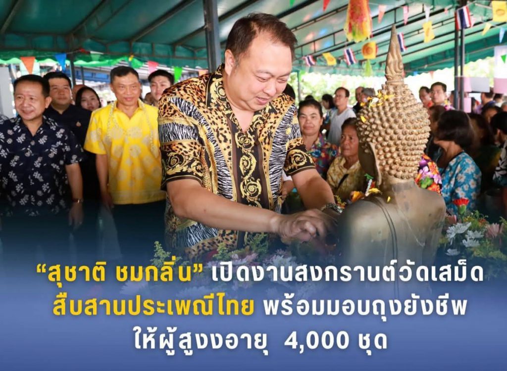“สุชาติ ชมกลิ่น” เปิดงานสงกรานต์วัดเสม็ดสืบสานประเพณีไทย พร้อมมอบของขวัญให้ผู้สูงงอายุ 4,000 ชุด