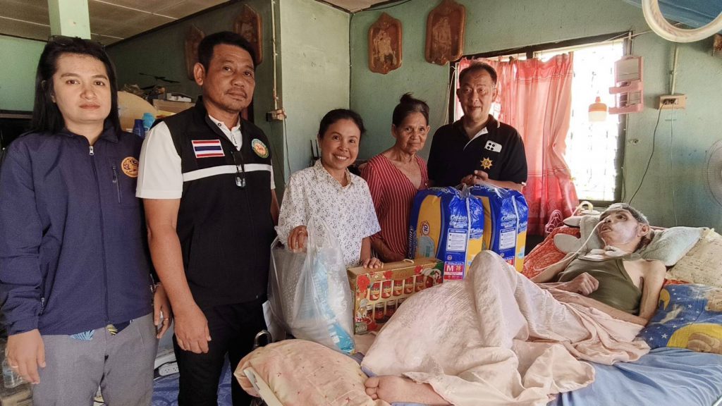 ซึ่งเป็นผู้ป่วยติดเตียงจากการประสบอุบัติเหตุ พร้อมทั้งได้มอบสิ่งของอุปโภคบริโภคที่จำเป็นต่อการดำรงชีพ เช่น ผ้าอ้อมผู้ใหญ่ อาหารเหลวสำหรับผู้ป่วย เพื่อบรรเทาความเดือดร้อน ตลอดจนให้กำลังใจแก่ผู้ป่วยและครอบครัว เพื่อเสริมสร้างขวัญและกำลังใจในการดำเนินชีวิต และเสริมสร้างคุณภาพชีวิตของประชาชนในพื้นที่ให้มีความเป็นอยู่ที่ดีขึ้น