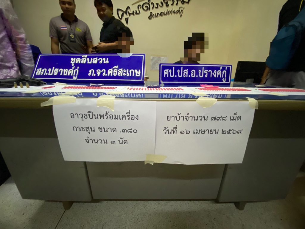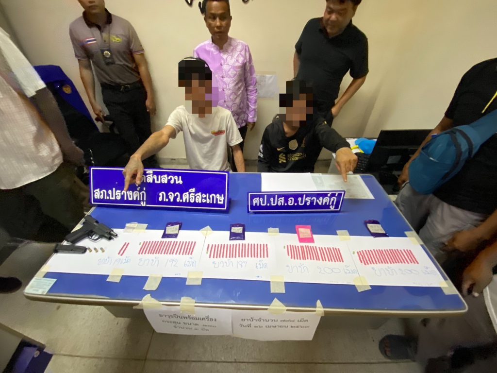 ศรีสะเกษ ฝ่ายปกครองปรางค์กู่ ลุยกวาดล้างยาเสพติด รวบ 4 ผู้ต้องหา ยึดยาบ้ารวมเกือบ 800 เม็ด พร้อมอาวุธปืน