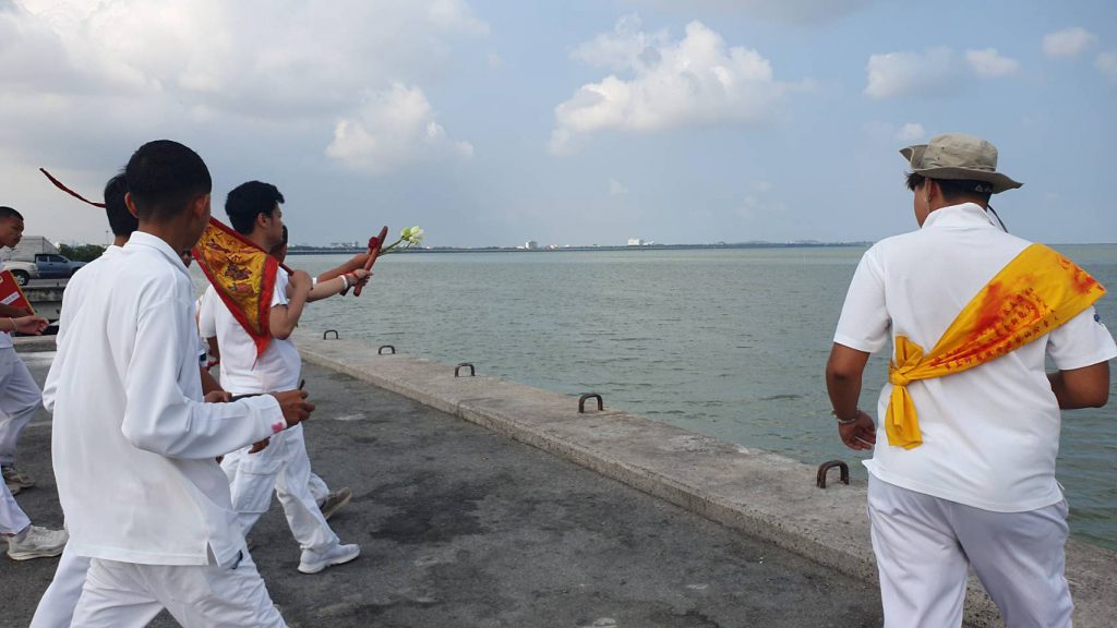 ชลบุรี – มูลนิธิไตรคุณธรรม (ซำเต็กไท้) จัดพิธีอัญเชิญดวงวิญญาณทางน้ำครั้งใหญ่ บริเวณสะพานใหม่เลียบชายทะเลเมืองชลบุรี มุ่งบำเพ็ญกุศลแก่ดวงจิตไร้ญาติและผู้ล่วงลับในทะเล ตามคติความเชื่อของสายเซียน