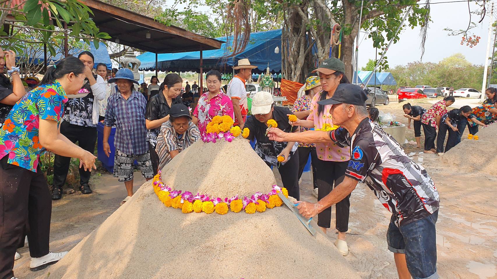 รองนายก อบต.สำนักบก นายนิติ ประสงค์กิจ กำนันตำบลสำนักบก พร้อมชาวบ้านชุมชน ต.สำนักบก ได้จัดพิธีก่อเจดีย์ทราย หรือเรียกอีกอย่างคือ ประเพณีตบทราย โดย ประเพณีก่อเจดีย์ทราย หรือ ขนทรายเข้าวัด เป็นประเพณีไทยที่ทำกันในช่วงเทศกาลสงกรานต์ที่สืบสานกันมากว่า100ปี โดยเชื่อว่าการเหยียบย่ำทรายออกจากวัดเป็นการทำบาป จึงขนทรายมาคืนเพื่อนำไปบูรณะวัด พร้อมก่อเป็นพระเจดีย์ทรายเพื่อเป็นพุทธบูชา เสริมสิริมงคลให้ชีวิตร่มเย็น อุดมสมบูรณ์ และสร้างความสามัคคีในชุมชน