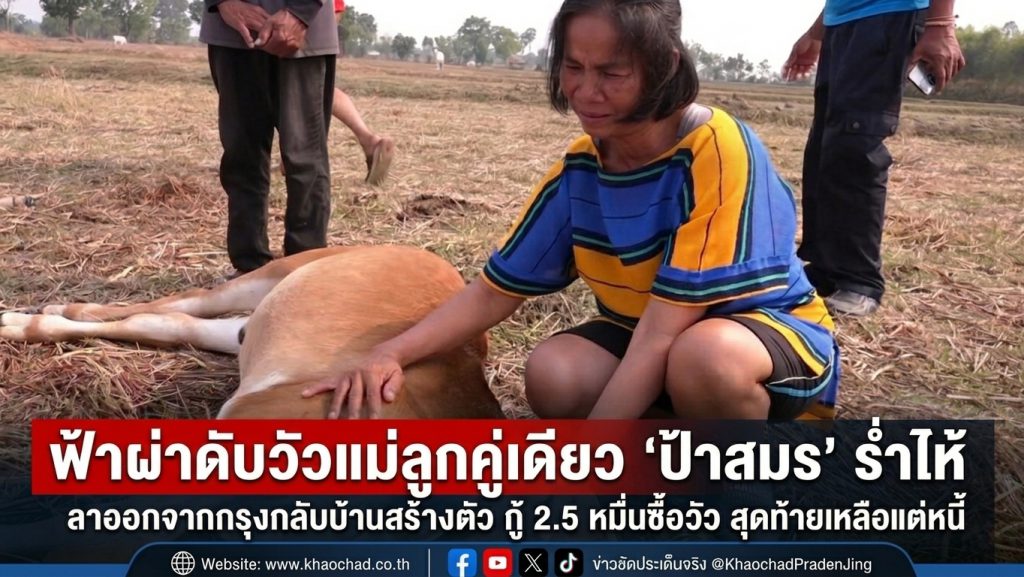 ฟ้าผ่าดับวัวแม่ลูกคู่เดียว “ป้าสมร” ร่ำไห้ ลาออกจากกรุงกลับบ้านสร้างตัว กู้ 2.5 หมื่นซื้อวัว สุดท้ายเหลือแต่หนี้ วอนช่วยเหลือ