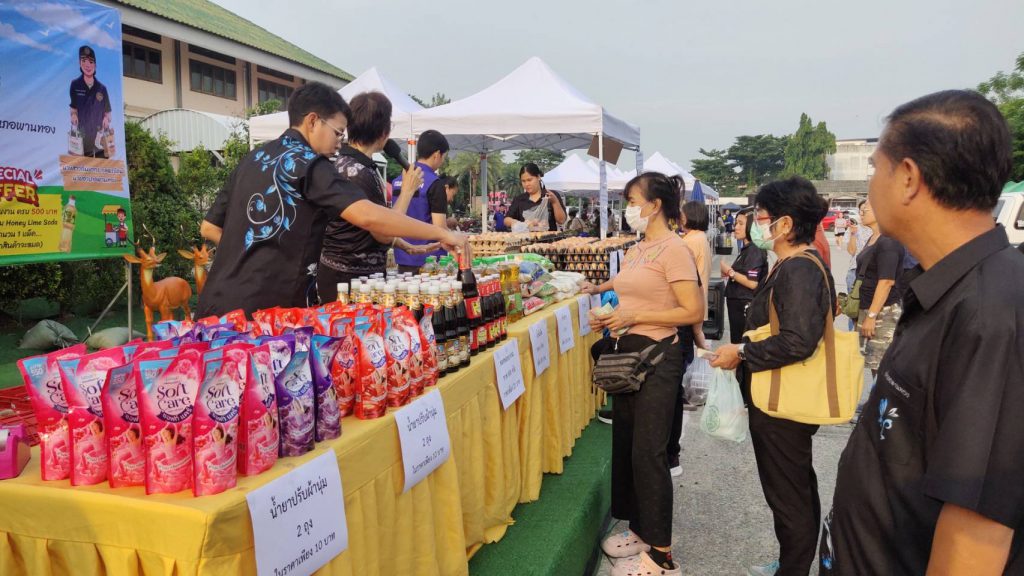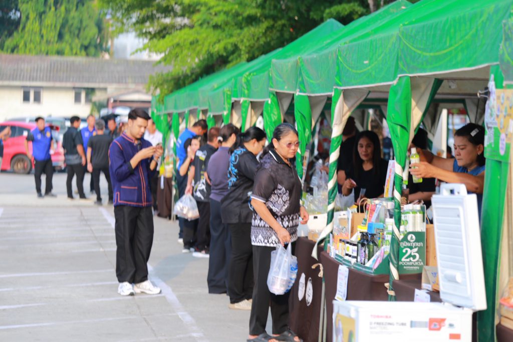 บรรยากาศภายในงานเป็นไปอย่างคึกคัก ประชาชนทยอยเดินทางมาจับจ่ายต่อเนื่อง พร้อมมีของแถมสำหรับผู้ซื้อครบ 500 บาท เป็นน้ำผึ้งมะนาว 1 แพ็กกลับบ้าน