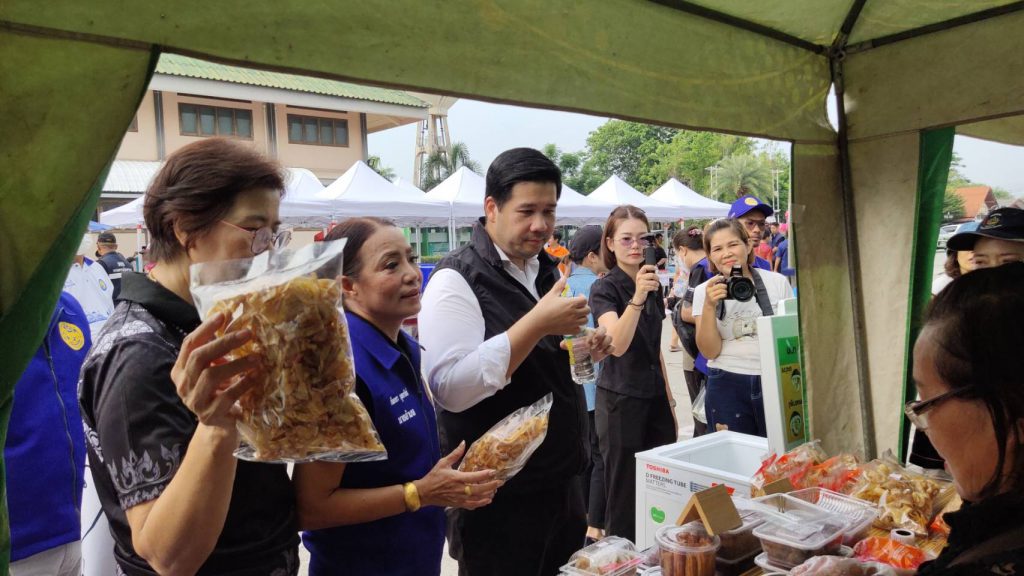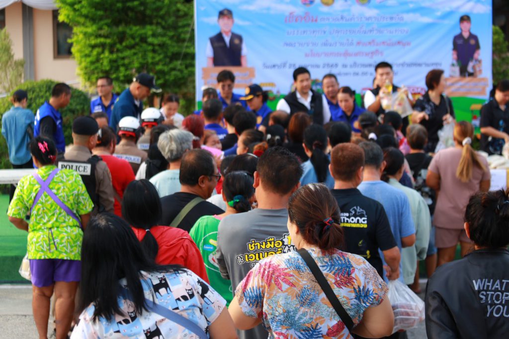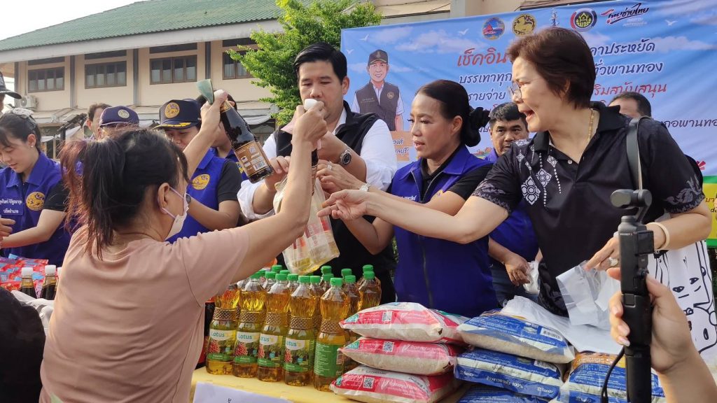 ชลบุรี – ชาวอำเภอพานทองต่อแถวซื้อสินค้าราคาประหยัดอย่างคึกคัก หลังภาครัฐร่วมจัดโครงการ “ไทยช่วยไทย” เปิดตลาดสินค้าจำเป็น ลดภาระค่าครองชีพ กระตุ้นเศรษฐกิจฐานราก ที่บริเวณหน้าที่ว่าการอำเภอพานทอง จังหวัดชลบุรี
