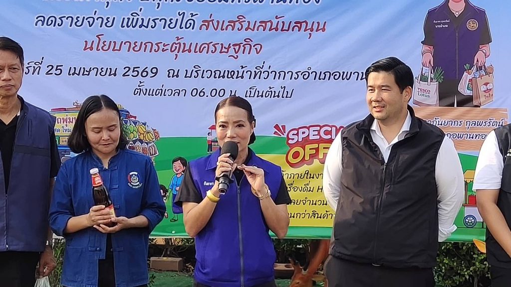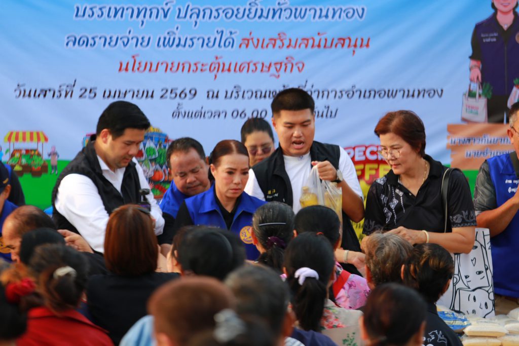 เมื่อเวลา 08.30 น. วันที่ 25 เมษายน 2569 นายอิสรา เจริญชาศรี รองผู้ว่าราชการจังหวัดชลบุรี ร.ต.อ.สิทธิพัฒน์ ภาวสุทธิ์ สส.ชลบุรี เขต 3 น.ส.กันยากร กุลพรรัตน์ นายอำเภอพานทอง พร้อมหัวหน้าส่วนราชการ ร่วมเปิดโครงการดังกล่าว เพื่อนำสินค้าจำเป็นมาจำหน่ายในราคาต่ำกว่าท้องตลาด ช่วยบรรเทาค่าครองชีพประชาชน