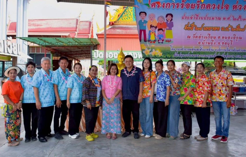 บรรยากาศอบอุ่นเปี่ยมด้วยรอยยิ้มและความสุข เมื่อ จิรวุฒิ สิงห์โตทอง สมาชิกสภาผู้แทนราษฎรจังหวัดชลบุรี เป็นประธานในพิธีเปิดโครงการ “ร้อยรักดวงใจ ห่วงใยผู้สูงอายุ” ณ วัดอ่างเวียน ตำบลหนองอิรุณ อำเภอบ้านบึง จังหวัดชลบุรี โดยมี อารีรัตน์ สิงห์โตทอง พร้อมคณะผู้บริหาร สมาชิกสภา กำนัน ผู้ใหญ่บ้าน กลุ่มสตรี และอาสาสมัครสาธารณสุขประจำหมู่บ้าน (อสม.) เข้าร่วมกิจกรรมอย่างคึกคัก