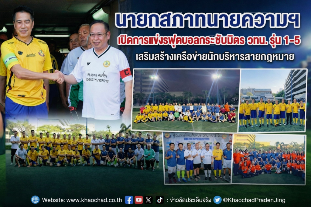 1 min read ข่าว ข่าวชัดประเด็นจริง ข่าวชัดออนไลน์ นายกสภาทนายความฯ เปิดการแข่งขันฟุตบอลกระชับมิตร วทน. รุ่น 1–5 เสริมสร้างเครือข่ายนักบริหารสายกฎหมาย 6 วัน ago ชายมือหนึ่ง_กรุงโซล ดร.ธนพล คงเจี้ยง นาย...